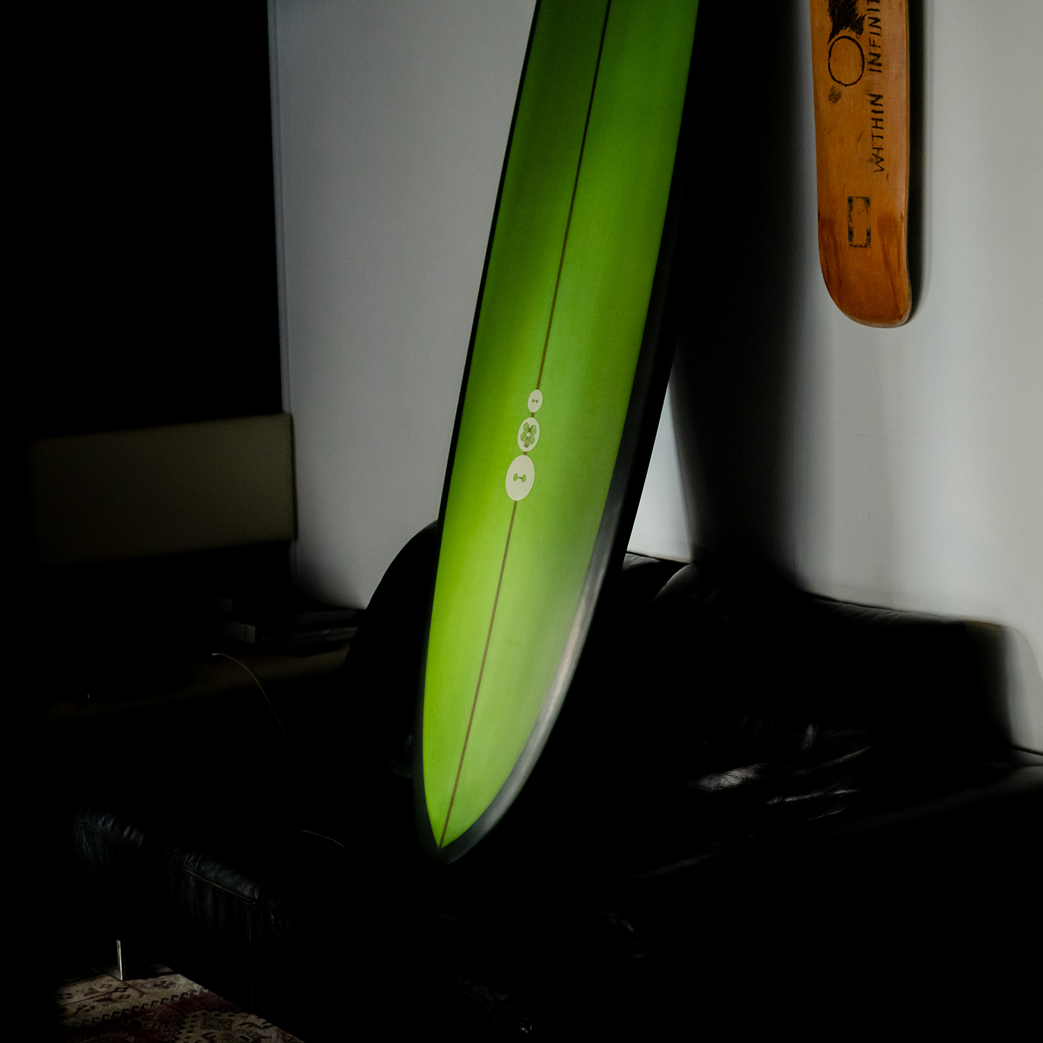 ・Size : 9’6”(289.5cm) x 22 7/8”(58.1cm) x 2 7/8”(7.30cm) ・Stringer : Dark wood stringer ・Color : グリーンティント ・Tai […]