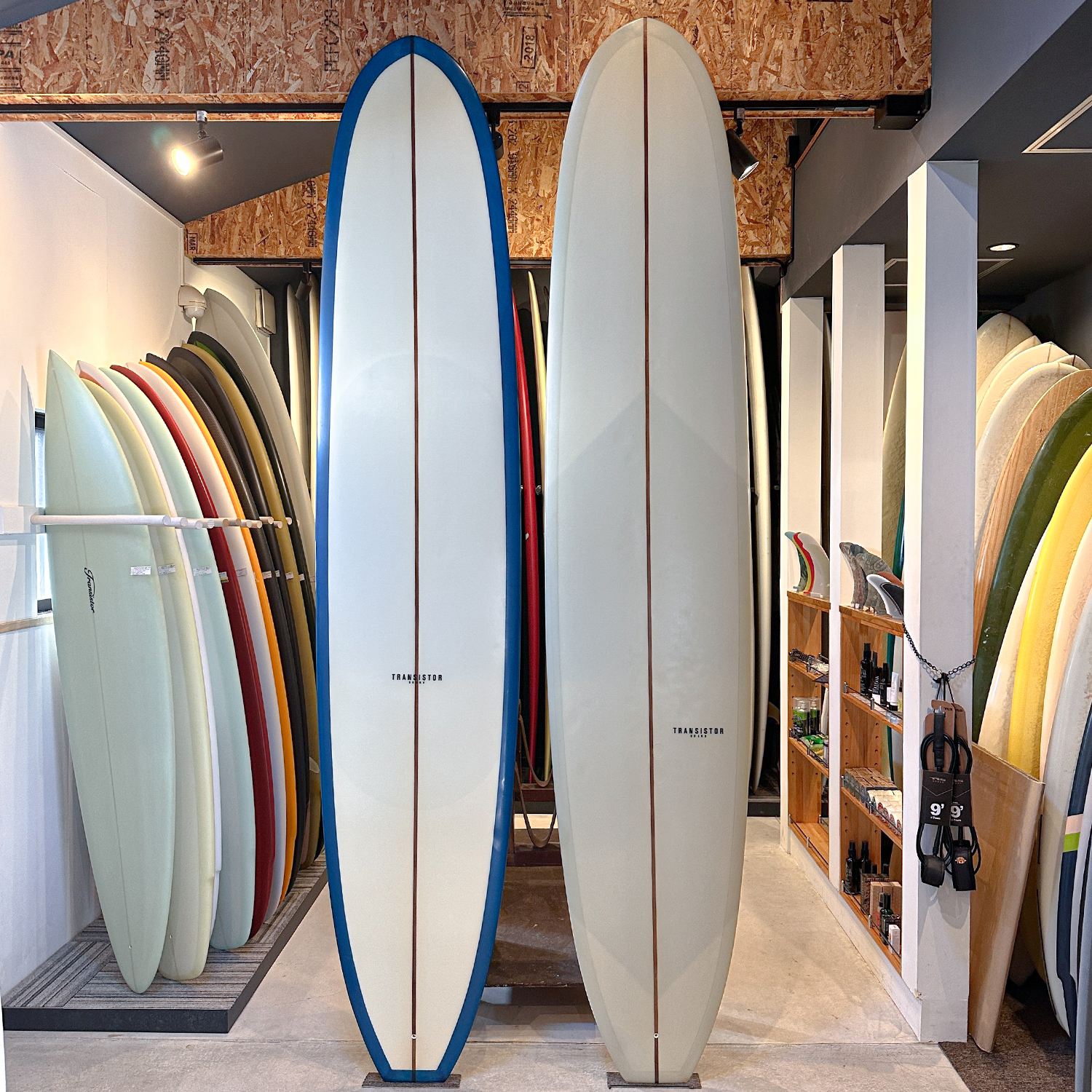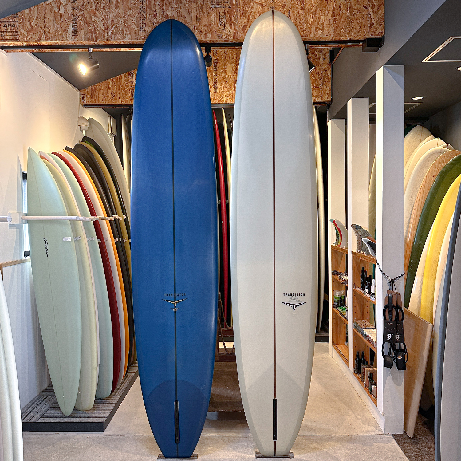 9’8” はフットマークが中程度、レール・ボトムに凹み/小傷 / リペア痕が数箇所と日焼けが見られますが、2本ともご購入後すぐにご使用可能なコンディションです。